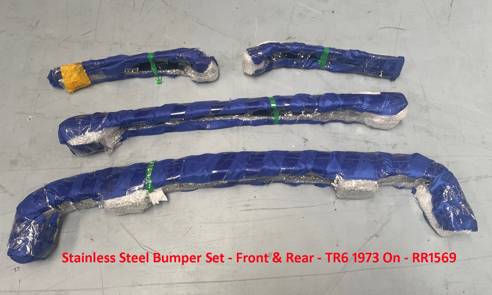 This is a full Stainless Steel Set of a bumper to suit the Triumph TR6 from 1973 onwards