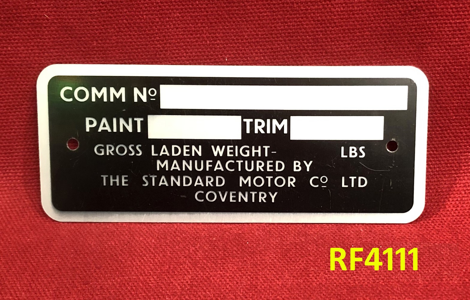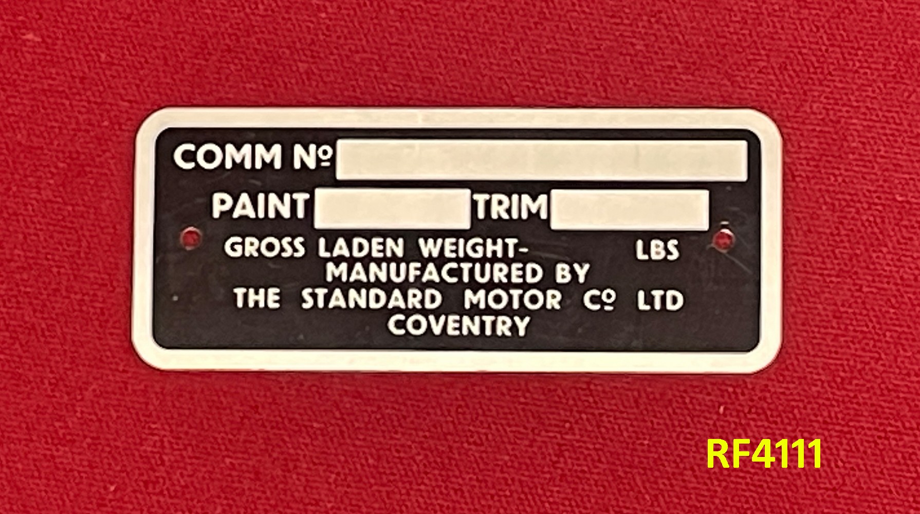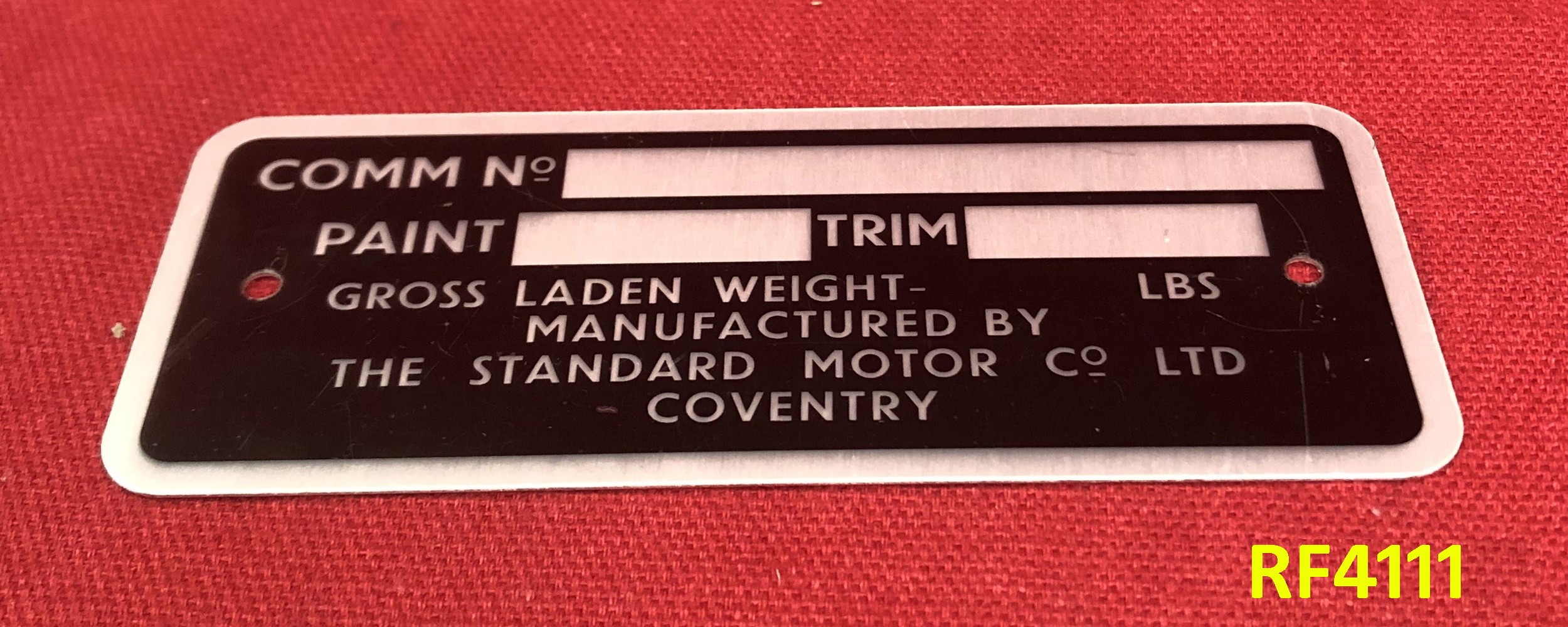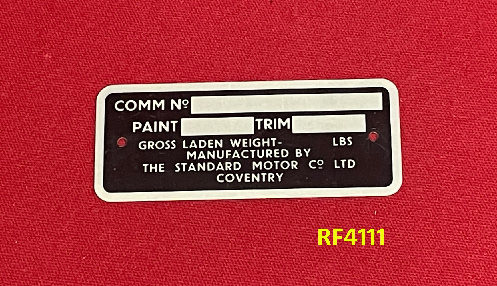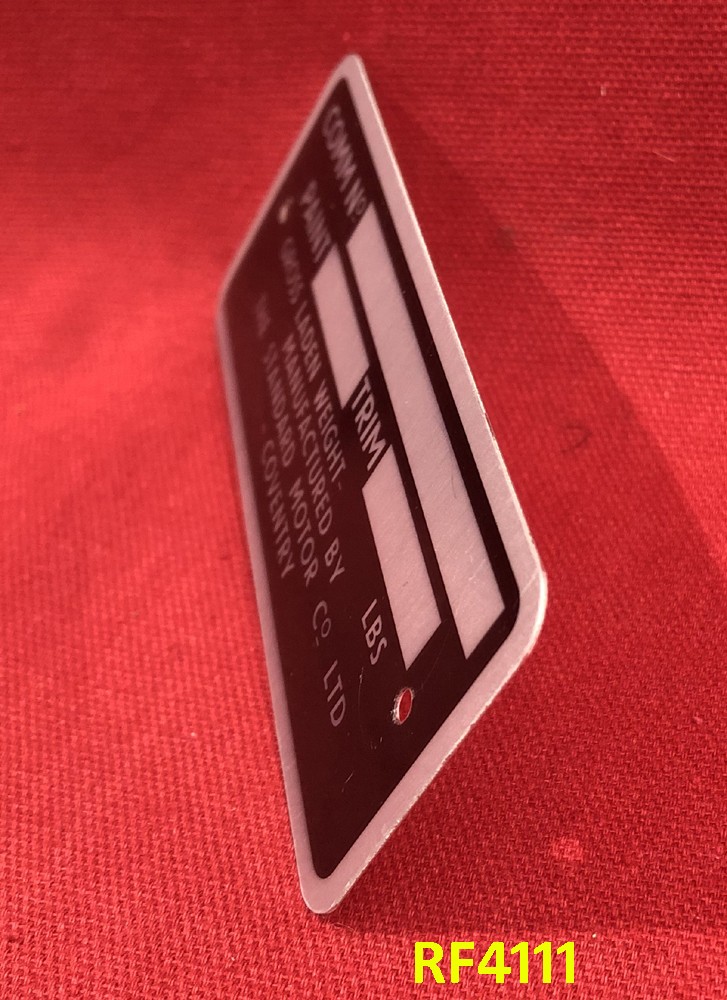 Triumph Commission Plate - Standard Motor Company Coventry - TR4A - RF4111